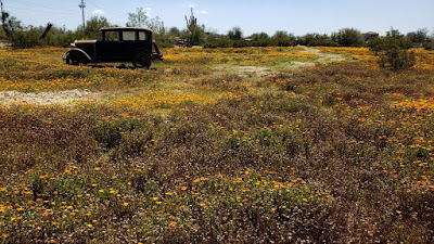 In Apache Junction, there's a neat lot with tons of flowers and some rusty stuff. I'm in heaven!